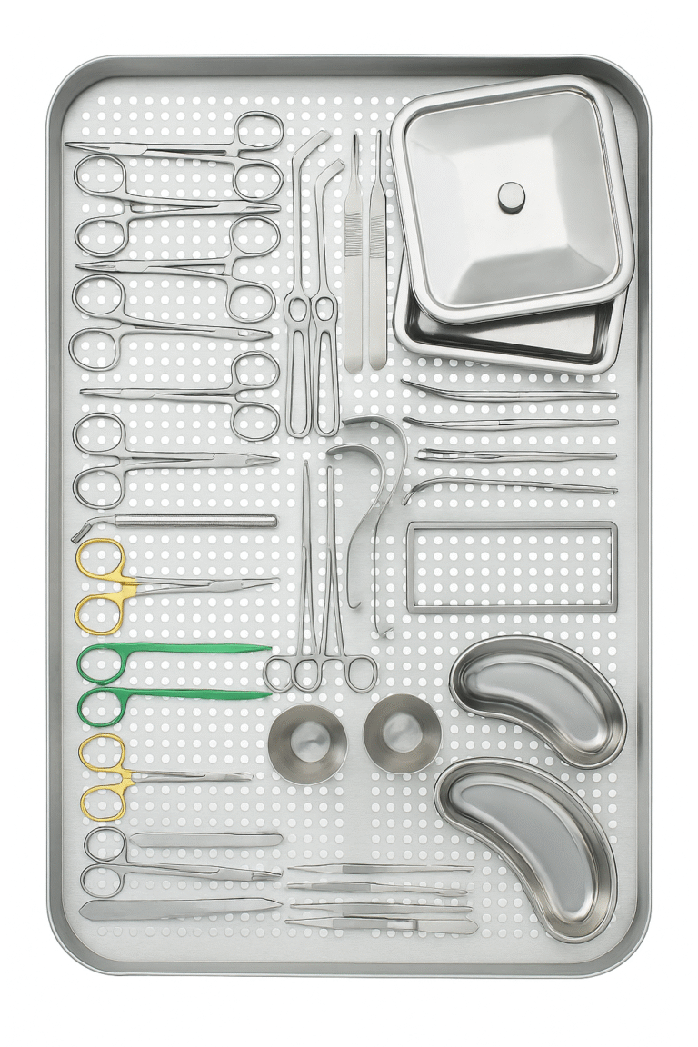 Bowl set (kidney dishes, round bowls) – for holding saline or instruments.