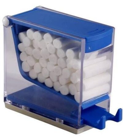 A Cotton Dispenser is a container or device used to store and dispense cotton rolls, pellets, or balls in a clean and convenient way during dental procedures. It helps maintain hygiene, prevents contamination, and allows quick one-handed access to cotton materials.