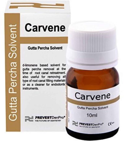 Carvene is a dental solvent specifically designed for the softening and removal of gutta-percha and root canal sealers during endodontic retreatment. It provides a safer, less toxic alternative to chloroform and xylene-based solvents while maintaining high efficiency in dissolving materials within the root canal system.