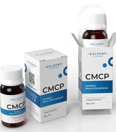 CMCP is a root canal disinfectant and antiseptic solution used in endodontic treatment. It combines camphor (for soothing action) with monochlorophenol (for strong antibacterial effect), making it effective in disinfecting root canals and pulp chambers.