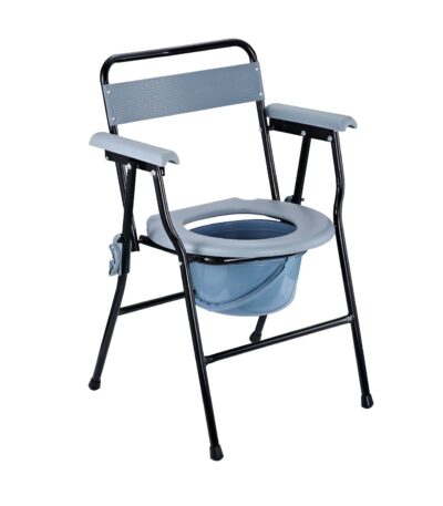 Removable commode bucket with a lid for hygienic and easy cleaning.