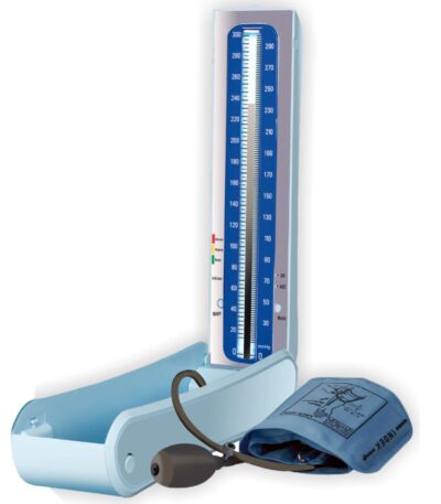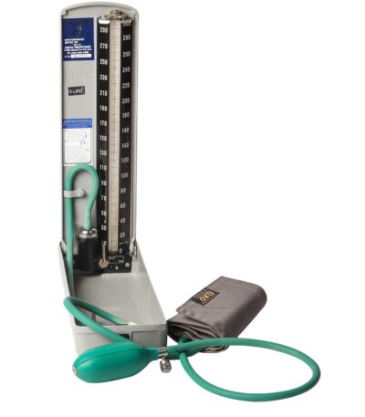 Also known as a Desk Type Mercury Sphygmomanometer composed of an inflatable cuff to collapse and then release the artery under the cuff in a controlled manner and a mercury manometer to measure the pressure.