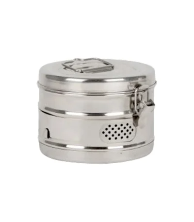 Small sterilizing drums are compact metal containers used to sterilize and store medical instruments, dressings, or small surgical supplies. Their smaller size makes them ideal for handling limited quantities of items or for use in clinics, minor procedure rooms, and laboratories.