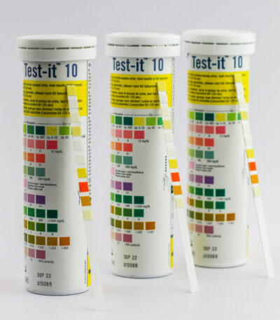 Urinalysis strips are thin, plastic strips with multiple chemical reagent pads attached along one side. Each pad changes color when it reacts with specific substances in the urine, allowing quick and easy screening for various health conditions. These strips provide a rapid, semi-quantitative assessment of a person’s urine composition and are commonly used in hospitals, clinics, and laboratories for diagnostic purposes.