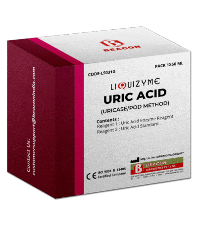 3. The color intensity is measured photometrically between 520–550 nm, proportional to uric acid concentration.