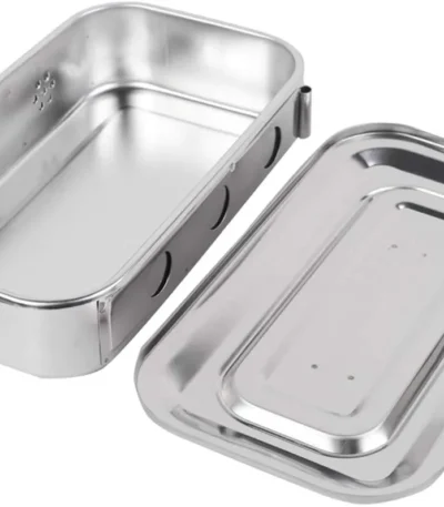 Stainless steel instrument tray for surgical and dental application. Lightweight. Available in 8 by 12.