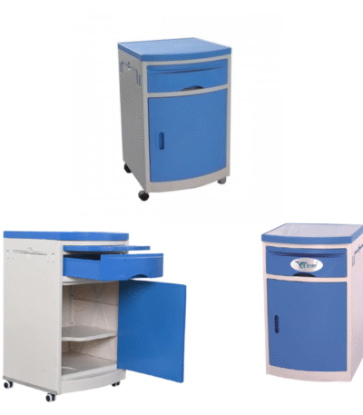 The Hospital Bedside Locker is a compact and functional storage unit designed for patient convenience and hospital efficiency. It is placed beside the patient’s bed to store personal items, medicines, and hospital supplies. Made from high-quality steel or ABS plastic, it ensures durability, hygiene, and easy maintenance in demanding healthcare environments.
