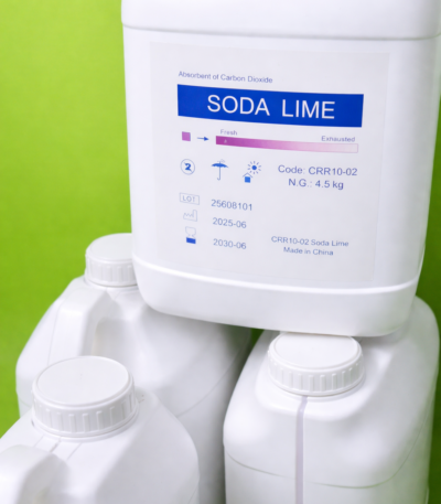 Soda Lime is a granular chemical absorbent used in anesthesia machines and closed-circuit breathing systems to absorb carbon dioxide (COâ‚‚) from exhaled gases. It allows patients to rebreathe anesthetic gases safely without COâ‚‚ buildup, conserving both gas and anesthetic agents.