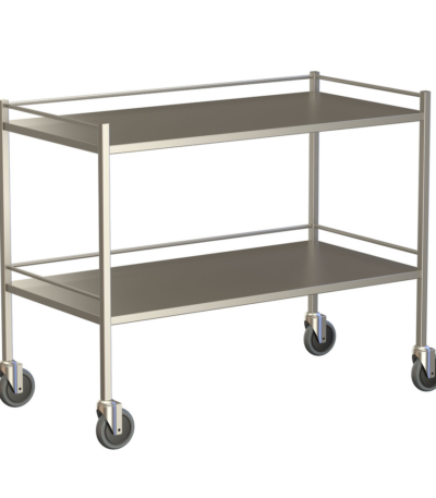 The Instrument Trolley is typically constructed from high-quality stainless steel, making it corrosion-resistant, easy to clean, and durable. It consists of two or more flat shelves supported by a sturdy frame and mounted on smooth-rolling castor wheels for easy mobility.
