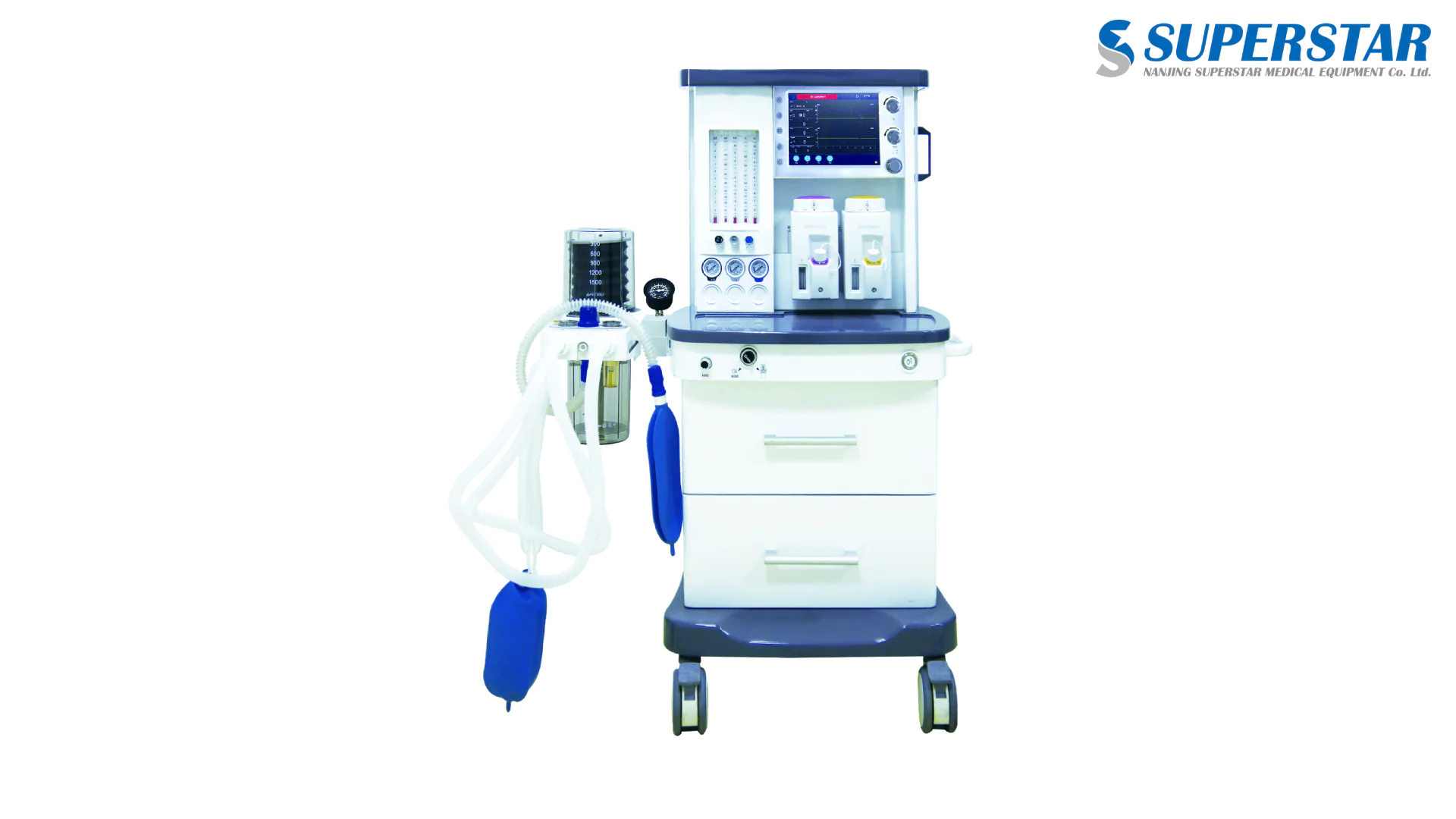 The ANESTHESIA Superstar S6100D is a modern anesthesia machine designed to deliver safe, stable, and precise anesthesia during surgical procedures. It combines essential ventilation features with advanced monitoring to support patient care in operating rooms of all sizes.