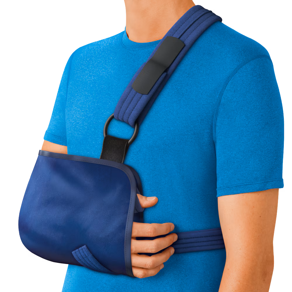 Holds the arm in a flexed position close to the body to reduce movement of the elbow, wrist, and shoulder.
