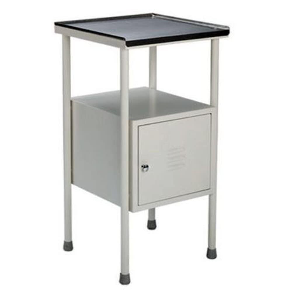 >Machine pressed sheet box with lockable doors. >Assembled to CRC tubular legs fitted with PVC stumps. >Stainless steel top.