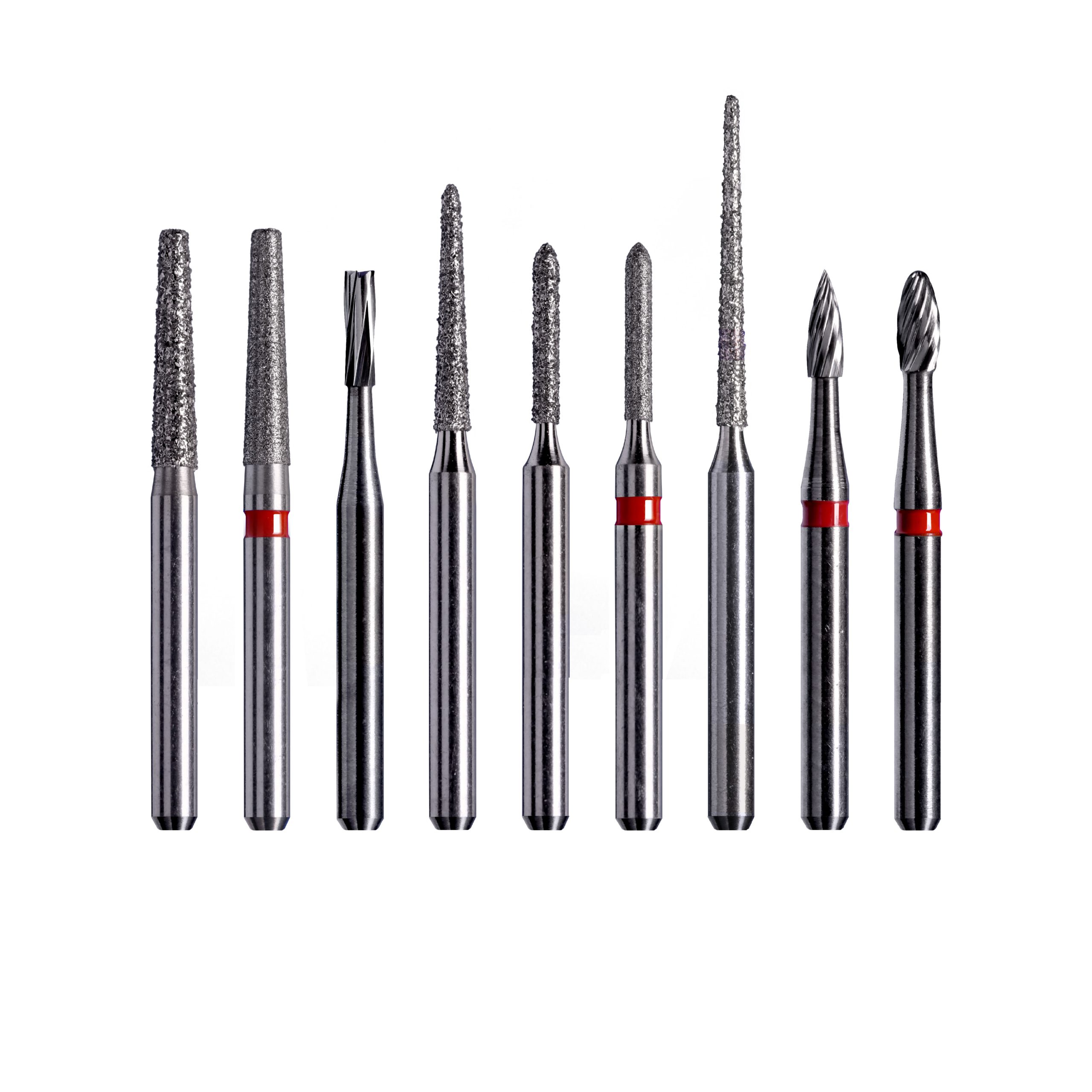This set includes **Fissure, Long Tapered, and Round diamond burs