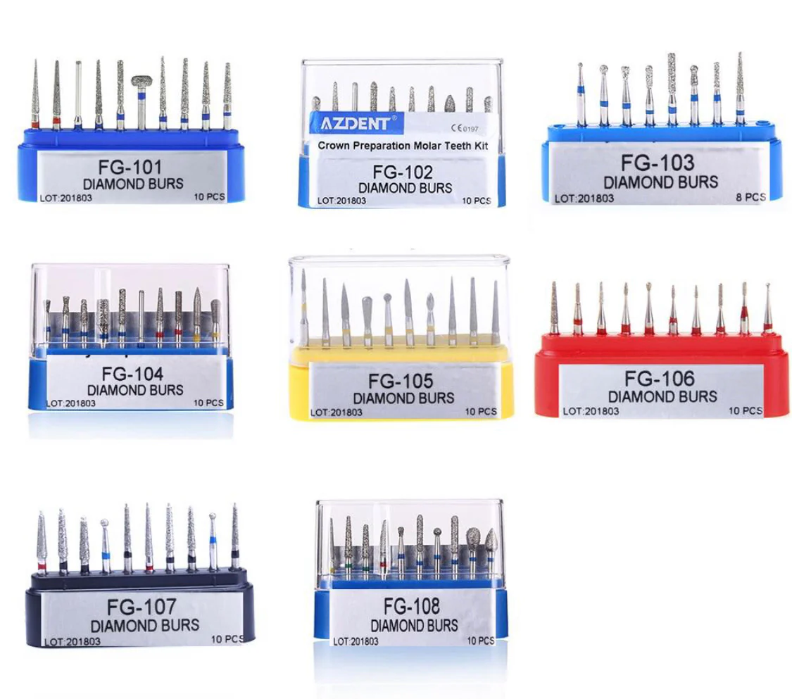 Diamond burs are precision-engineered rotary instruments used with high-speed handpieces for cutting, shaping, and finishing tooth structures or restorative materials. They are coated with fine industrial diamond particles, ensuring superior cutting efficiency, smoothness, and precision.