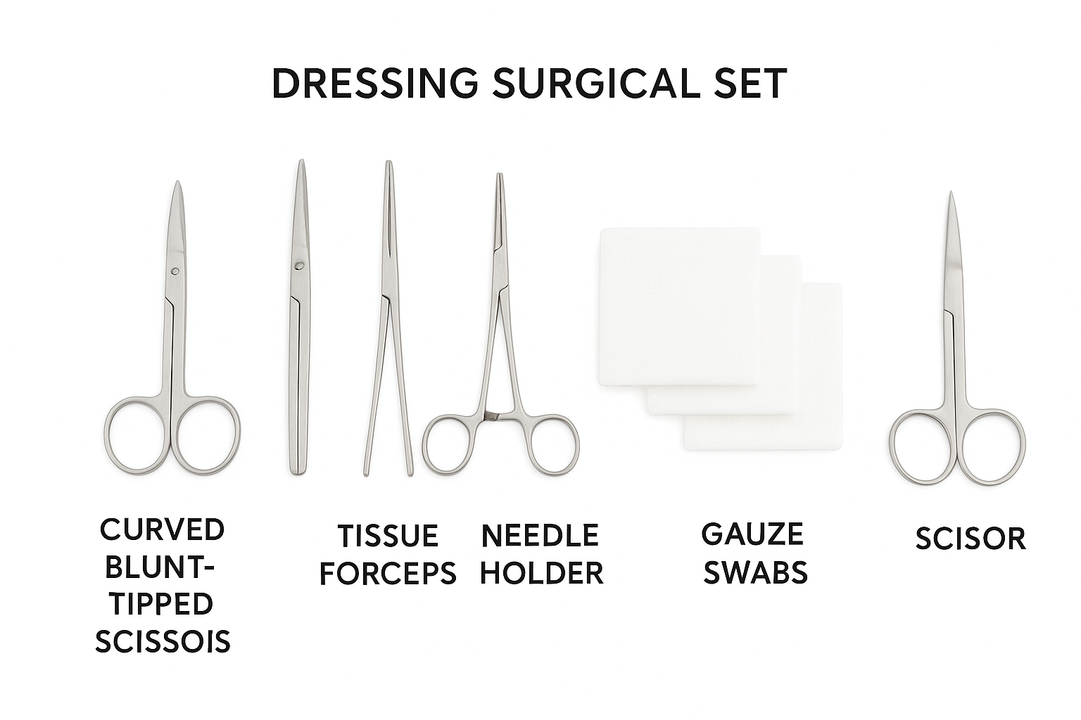 Here’s a detailed description of a Dressing Surgical Set, followed by a generated image showing the instruments.