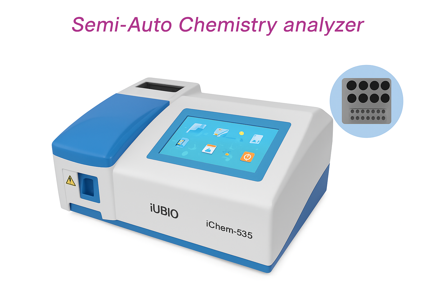 The label “Semi-Auto Chemistry analyzer”, indicating it requires some manual steps (like sample loading) but performs the measurements automatically.