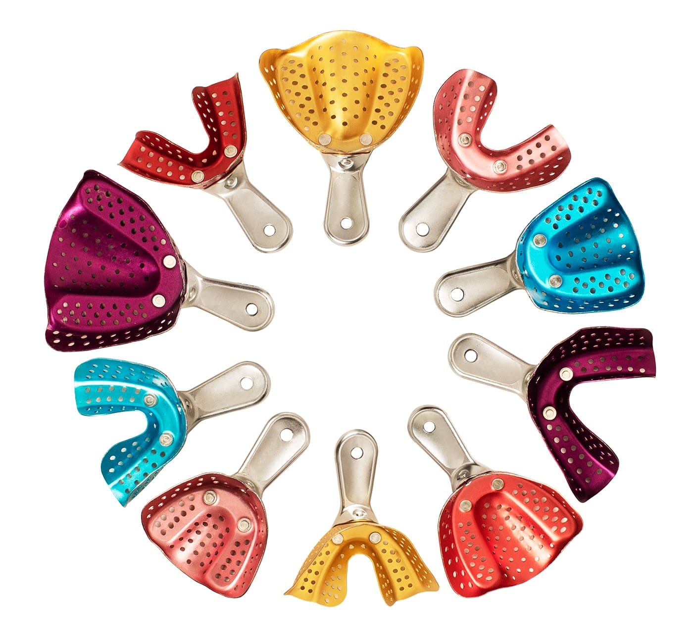 Impression trays are dental instruments used to hold and support impression materials while they set inside a patient’s mouth. They are designed to accurately capture the shape and details of the teeth and surrounding oral tissues, forming the first step in creating dental restorations, dentures, crowns, bridges, and orthodontic appliances.