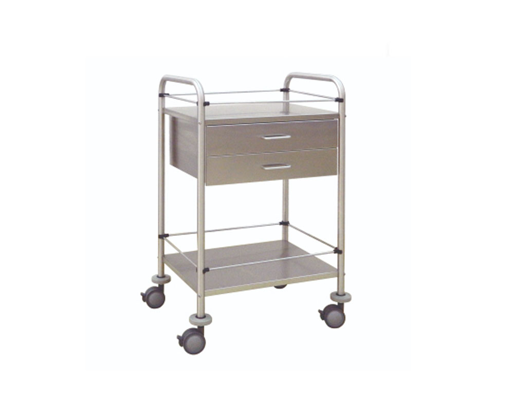 This mobile instrument/medicine trolley is designed for clinical, hospital, or laboratory settings, offering convenient access, organized storage and smooth mobility. The unit features two open shelves plus two drawers, enabling efficient arrangement of supplies, instruments or medications while maintaining a compact footprint.