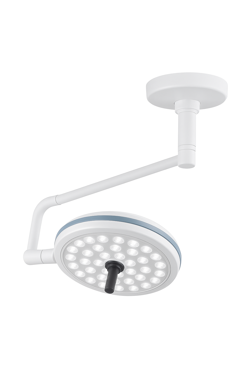 This operating light is a sleek, modern ceiling-mounted LED lamp designed to make surgical procedures safer, clearer, and more comfortable for both doctors and patients. It hangs gracefully from a single adjustable arm, which allows medical staff to position the light exactly where they need it with minimal effort.