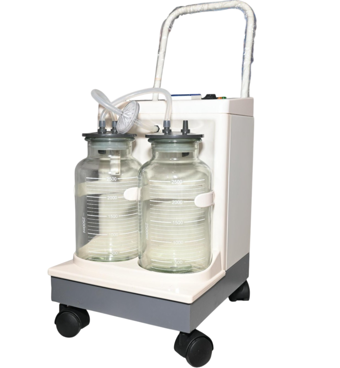 The Suction Machine (2 Bottle Type) is a high-performance medical suction unit designed for the removal of fluids, mucus, blood, or other secretions from a patient’s airways or surgical site. It features dual collection bottles for extended operation without interruption, making it suitable for hospitals, clinics, operating rooms, and emergency care.